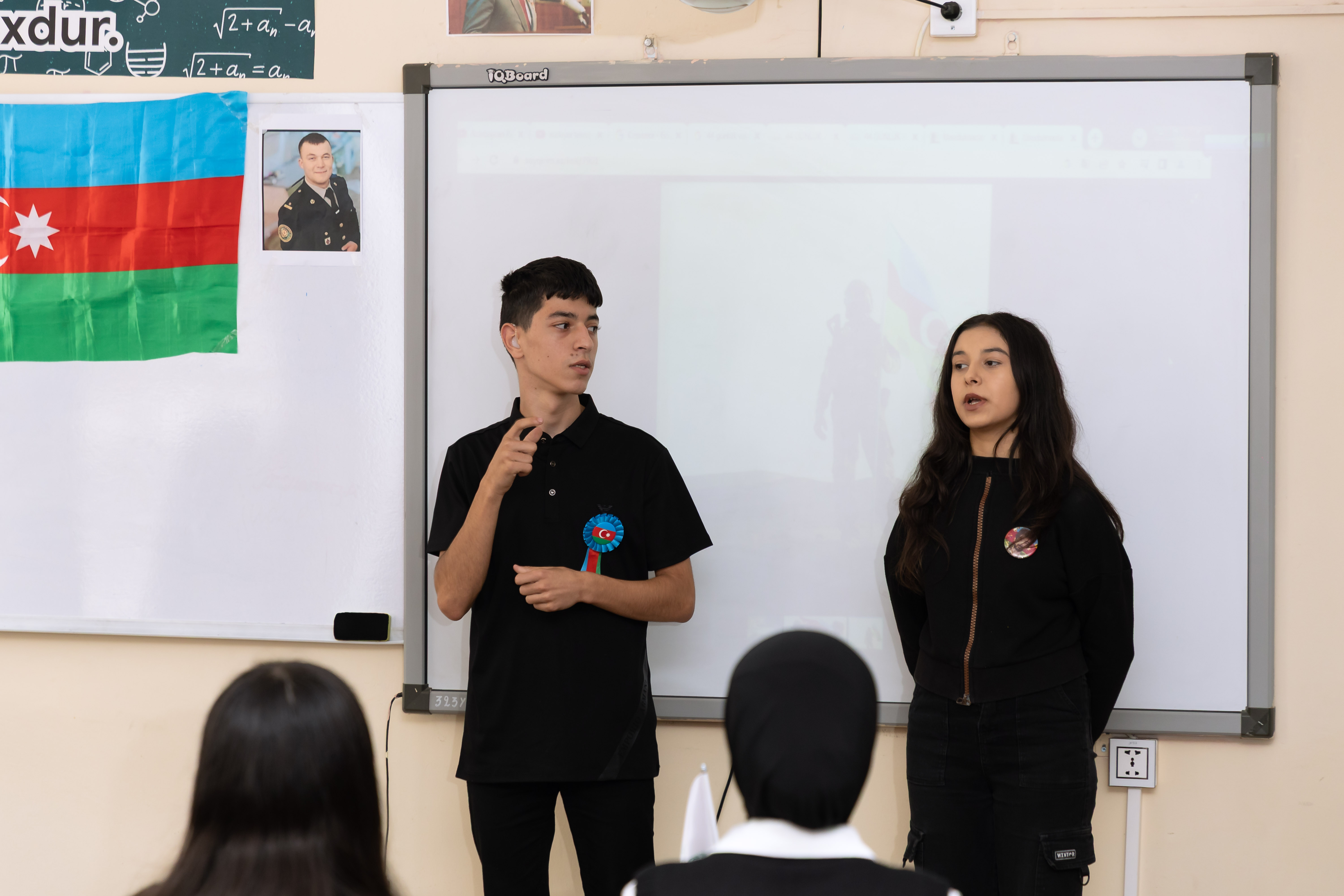 44 günlük Vətən müharibəsində öldürülən şəhidlərimizin əziz xatirəsi bir dəqiqəlik sükutla yad edilib, daha sonra onlarla bağlı məlumatlar təqdim olunub, videoçarxlar nümayiş olunub və səhnəciklər çəkilib.
