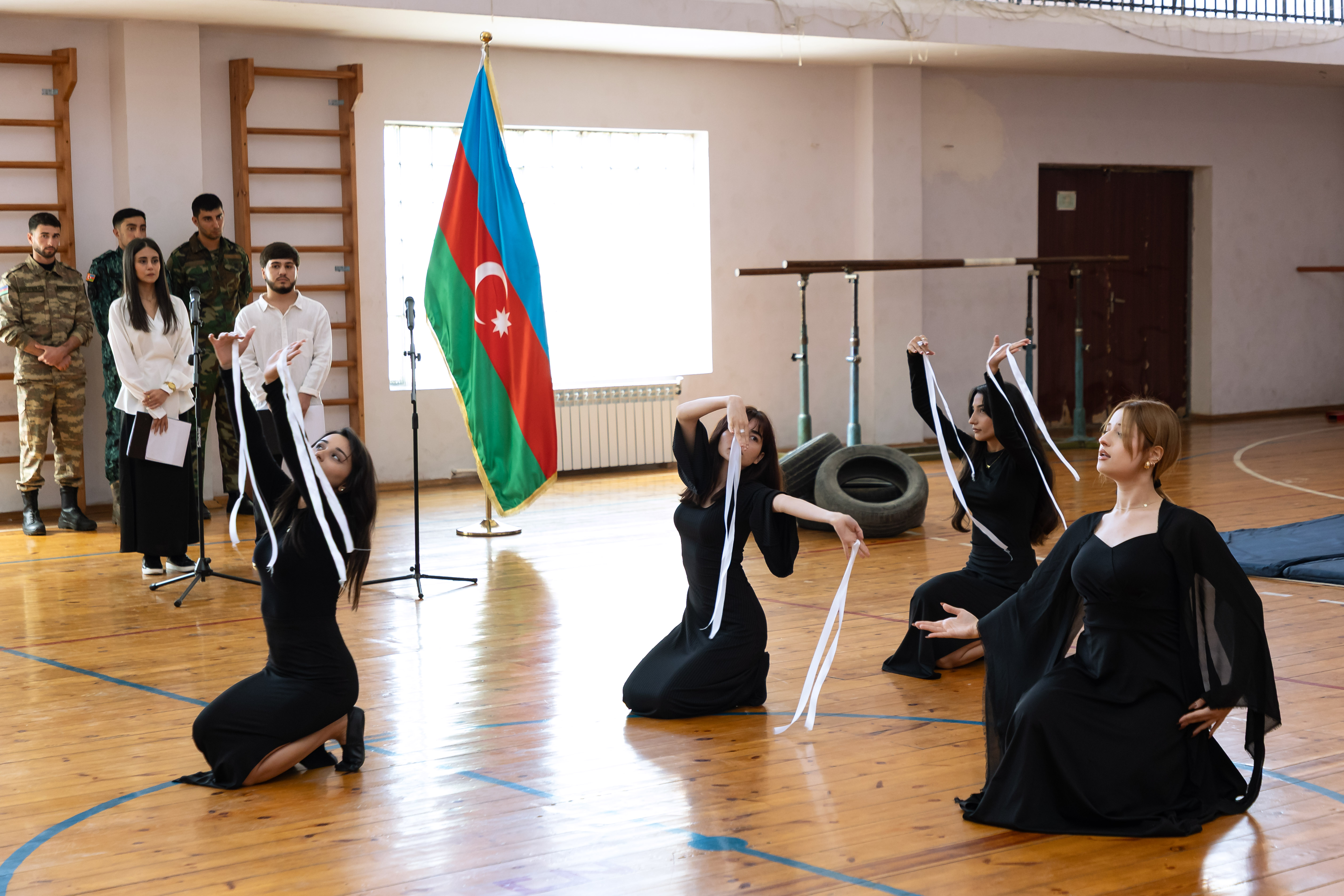 tədbir iştirakçıları şəhidlərimizin igidliyini anaraq onların xatirəsini ehtiramla yad saxlayır.