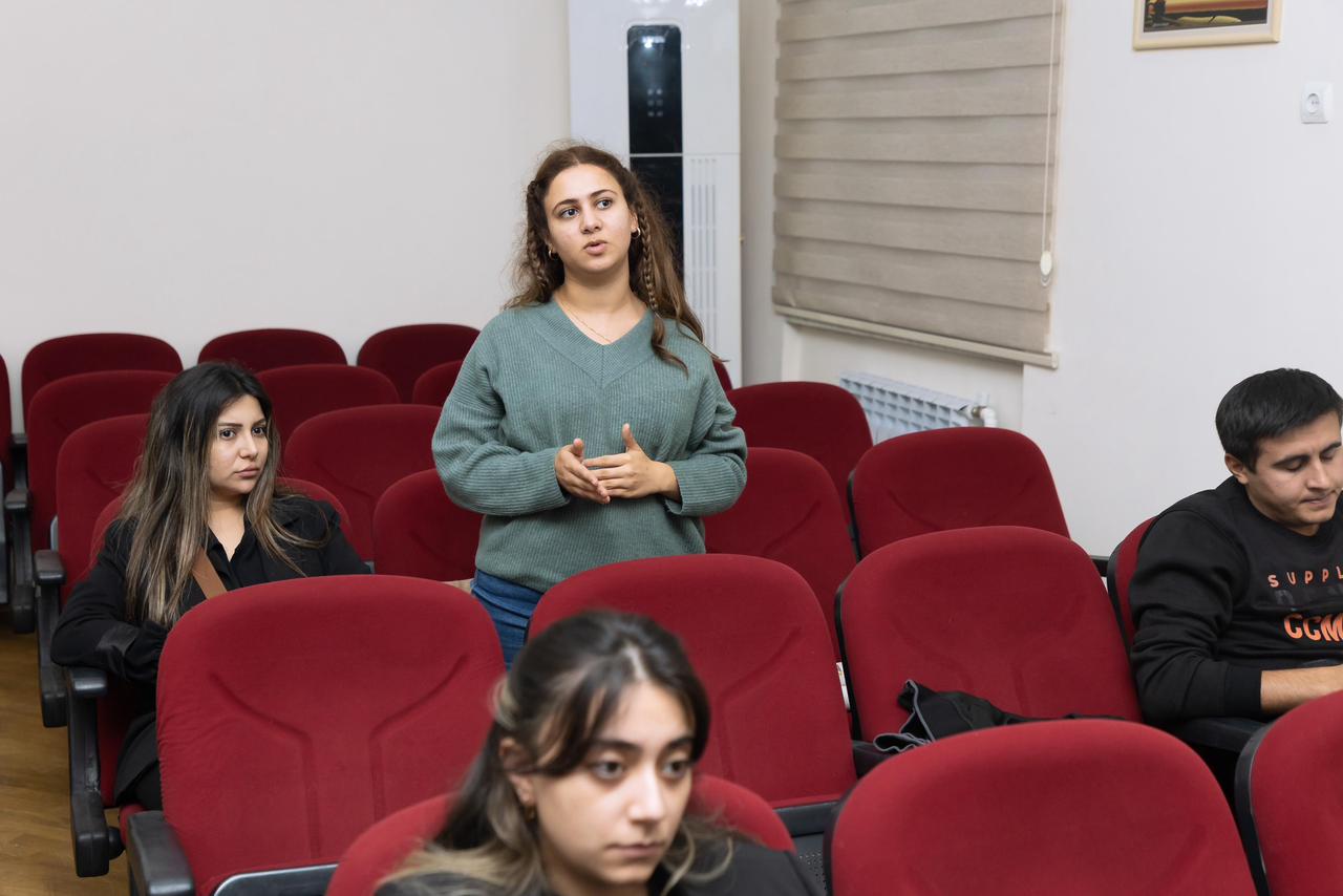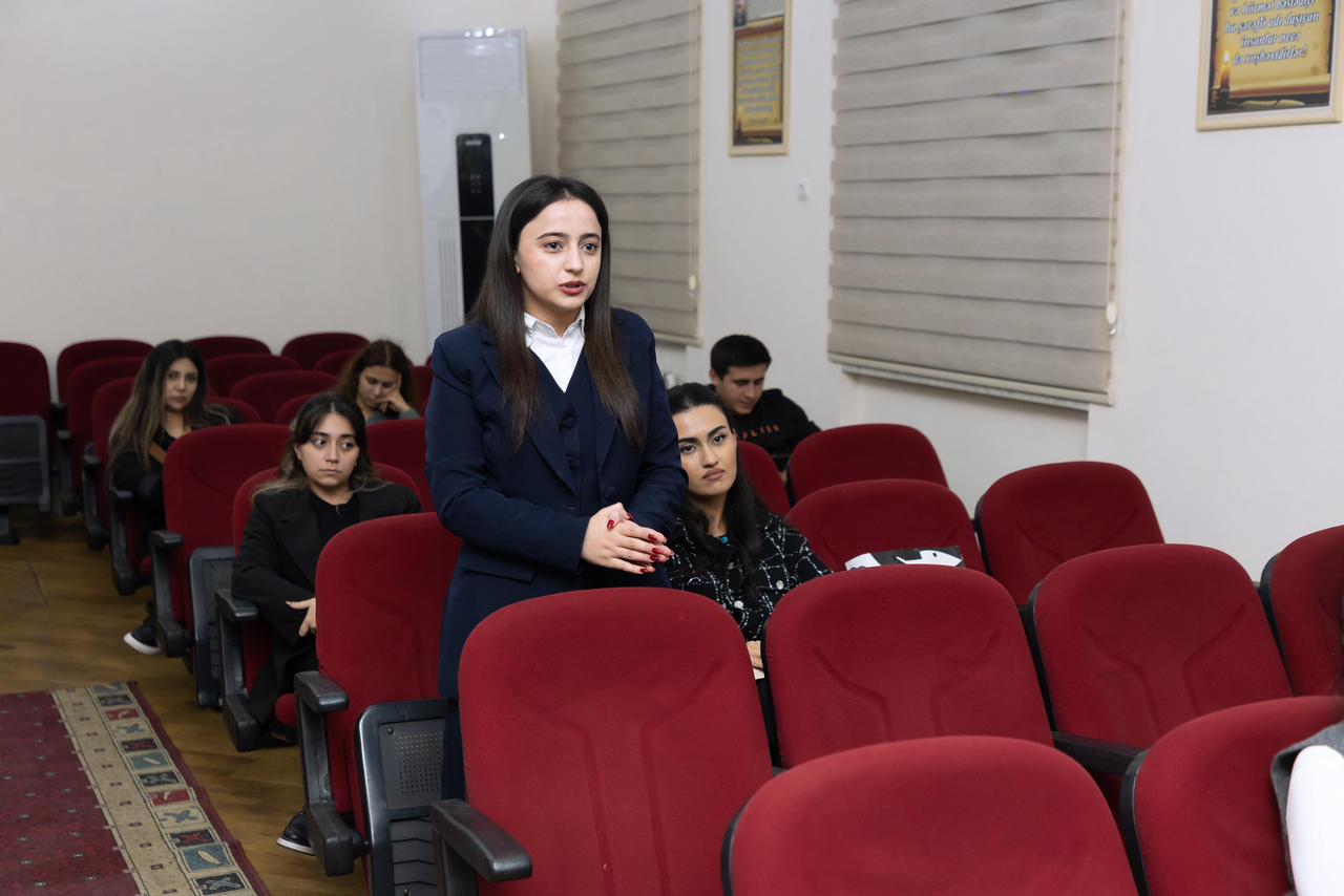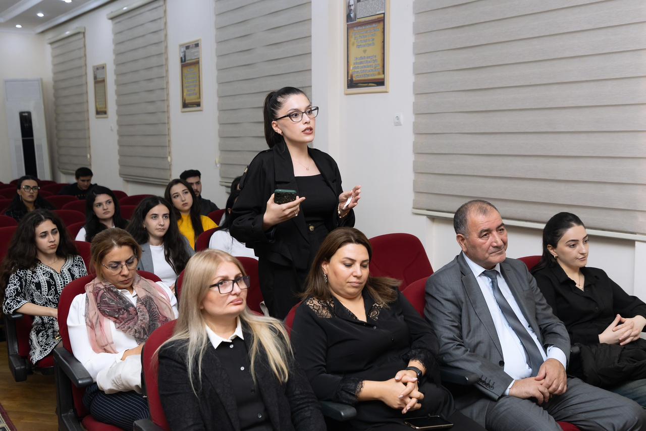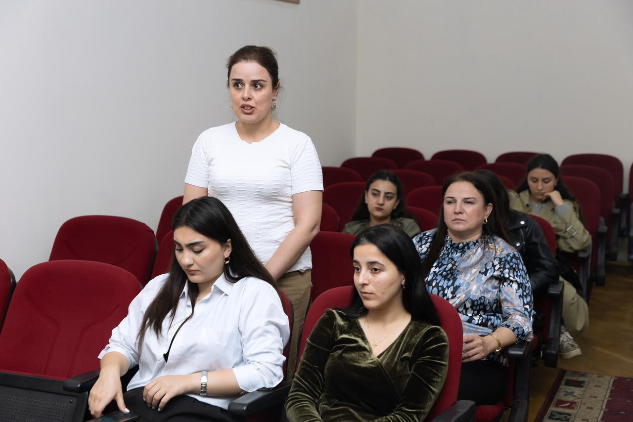 fəaliyyətdə kollecin rəhbərlərinin öz fəaliyyət istiqamətləri üzrə çıxışları. Görüş interaktiv şəkildə davam edib, magistrantların sualları cavablandırılıb.