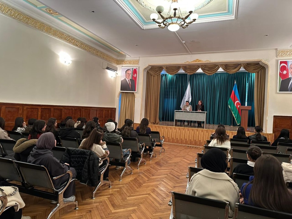 Bu çərçivədə kollecin Ailə və ev təhsili şöbəsinin tələbələri ilə imtahan qaydalarına dair müzakirə keçirilmişdir. Görüşdə Ailə və ev təhsili şöbəsinin müdiri İ. Babayeva və Keyfiyyət təminatı şöbəsinin müdiri E. Budaqova çıxış edərək imtahanların keçirilmə qaydalarını tələbələrə ətraflı şəkildə izah etmiş, onları maraqlandıran sualları cavablandırmışlar.