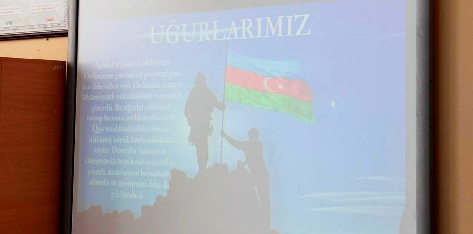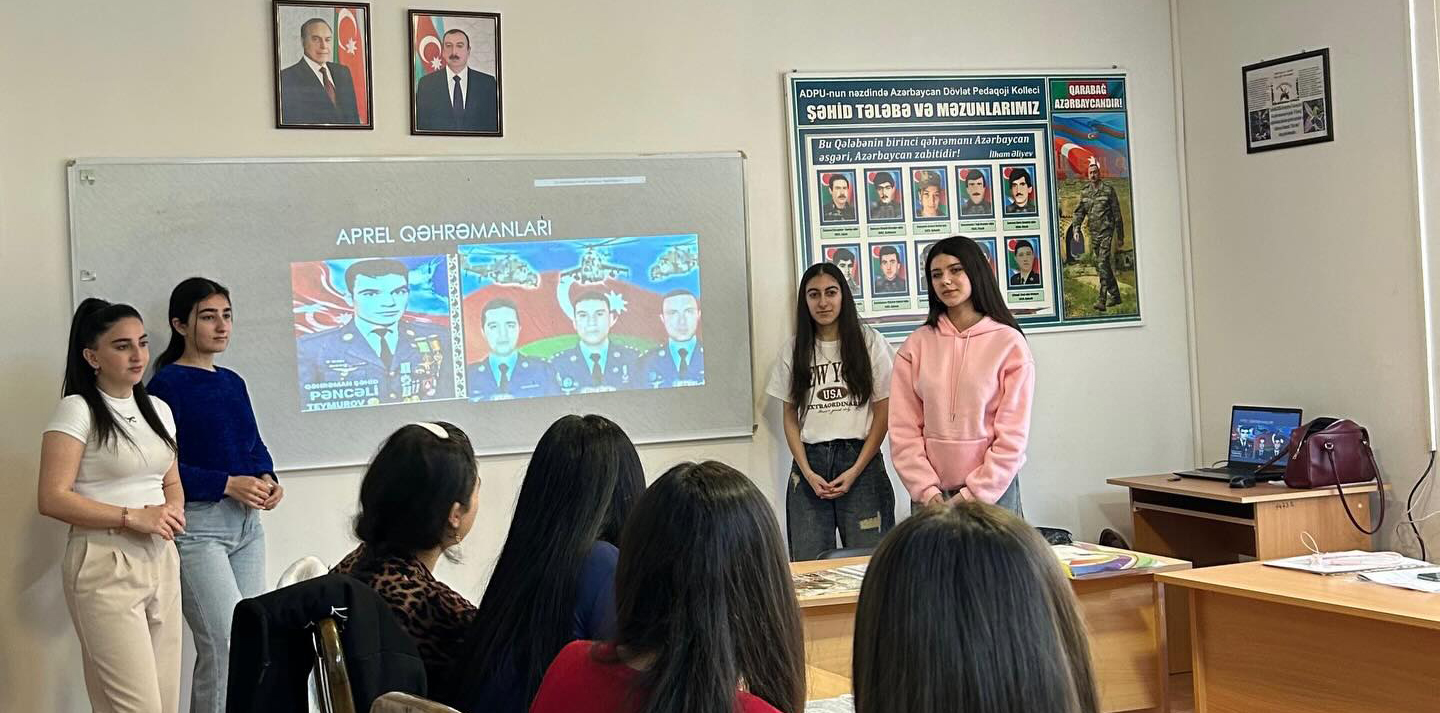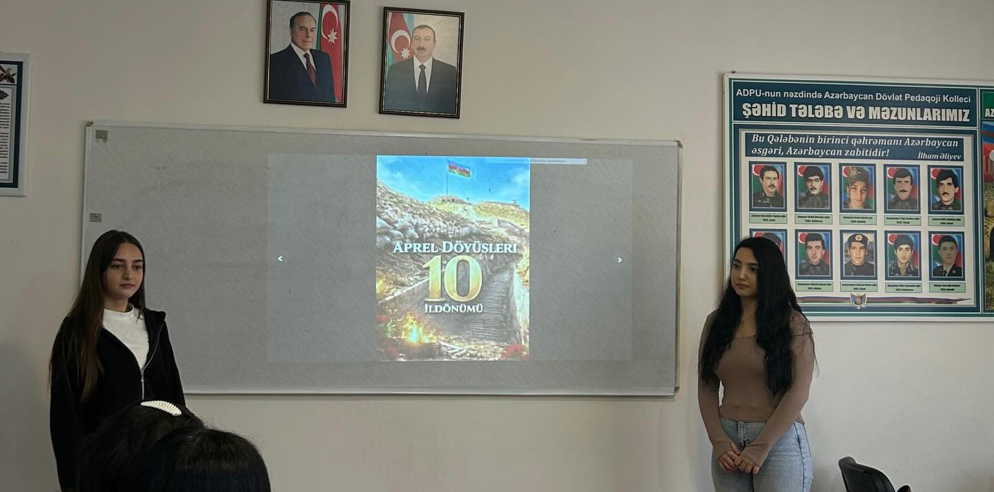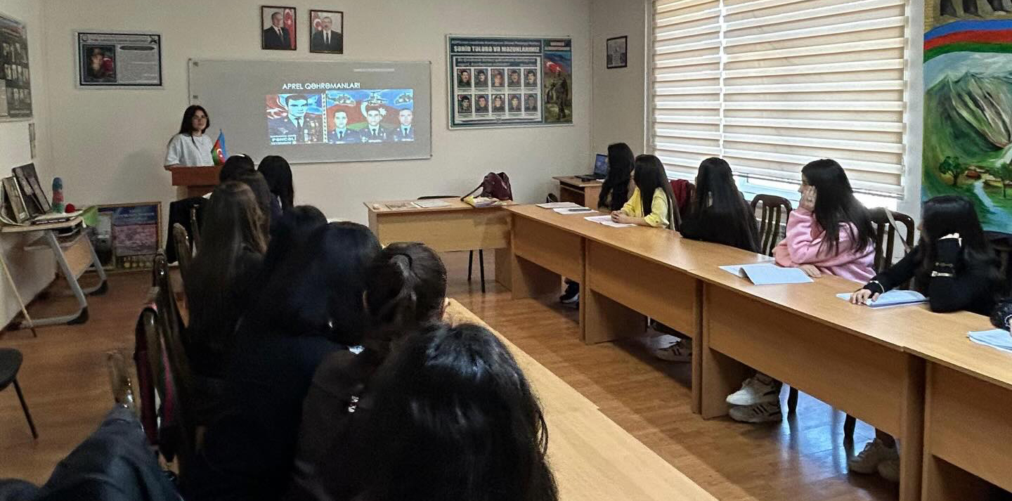 Eyni zamanda, tələbələrin mövzu ilə bağlı hazırladıqları çıxışlar dinlənilib, qəhrəman şəhidlərimizin şücaəti, ordumuzun yüksək peşəkarlığı və xalq–ordu birliyi xüsusi qeyd olunub. Qeyd edilib ki, Aprel döyüşləri gənc nəsildə vətənpərvərlik hisslərinin formalaşmasına mühüm təsir göstərir.