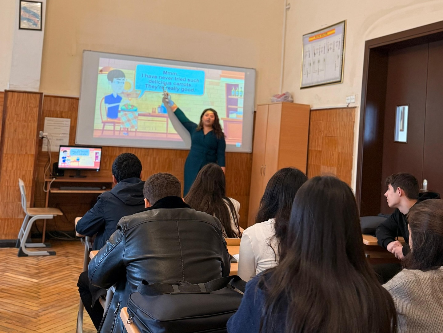 Bu dəfə mövzu “At a Business Lunch” olub. Tələbələr işgüzar nahar zamanı istifadə olunan əsas ifadələri, etik davranış qaydalarını və peşəkar dialoq formalarını öyrənib, real situasiyalar əsasında dialoqlar quraraq mövzuya başlama, fikir bildirmə, təklif vermə və səmimi şəkildə söhbəti tamamlamanın praktik üsullarını məşq ediblər. Görüş interaktiv şəkildə keçərək tələbələrin ingilis dilində peşəkar ünsiyyət bacarıqlarını daha inamlı şəkildə tətbiq etməsinə şərait yaradıb.