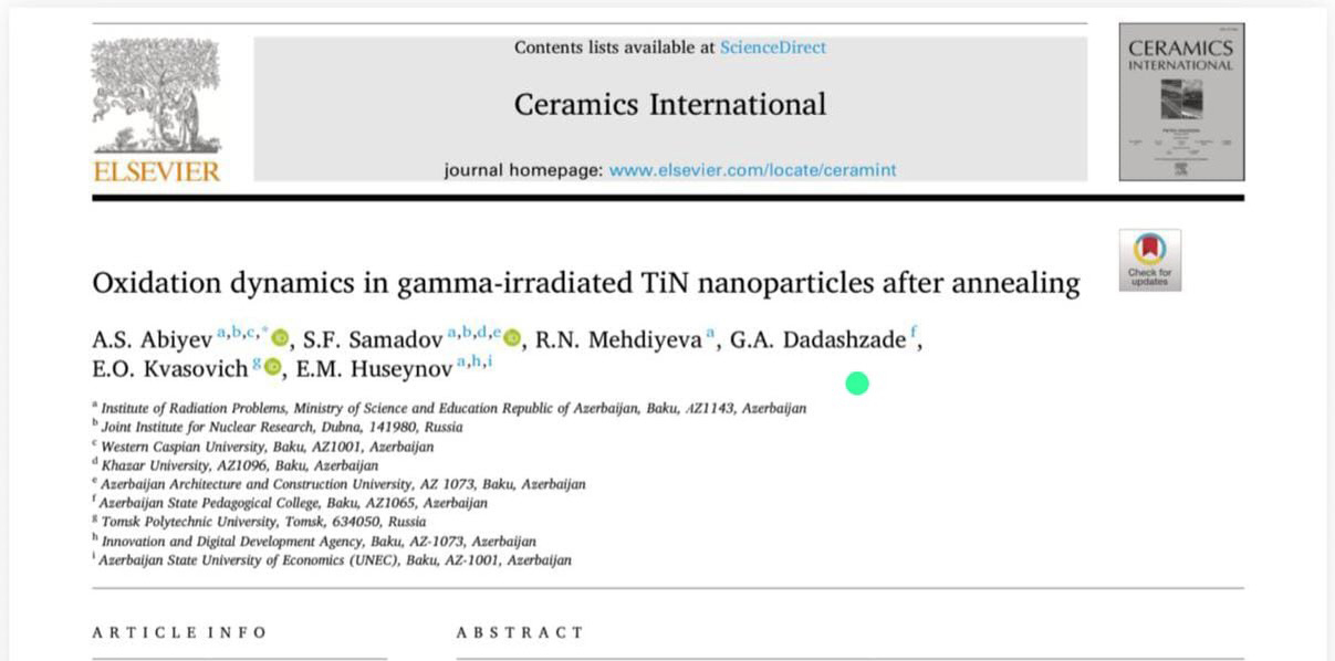 ADPU-nun nəzdində Azərbaycan Dövlət Pedaqoji Kollecinin müəllimi Günay Dadaşzadənin fizika sahəsi üzrə apardığı elmi tədqiqatların nəticələri Scopus bazasında indeksləşdirilən Q1 kateqoriyalı nüfuzlu beynəlxalq elmi jurnalda dərc edilmişdir.