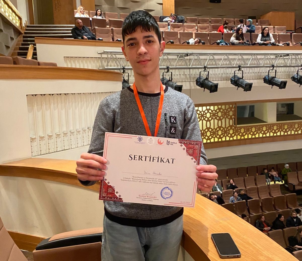 Tələbəmiz Əzim Əhmədov fəal iştirakına görə sertifikatla təltif olunub. Bu, tələbələrimizin sosial fəallığını və inklüzivlik dəyərlərinə olan marağını göstərən sevindirici nümunədir.