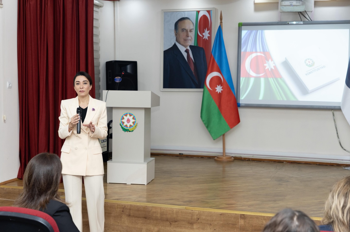 Daha sonra söz Ombudsman Səbinə Əliyevaya verilmişdir. Səbinə Əliyeva Azərbaycan Respublikasının Konstitusiyasının müstəqil dövlətçilik tariximizdəki rolu, insan hüquqlarının qorunmasının dövlət siyasətinin prioritet istiqamətlərindən biri olması, cəmiyyətdə hüquqi şüurun formalaşdırılması baxımından “Konstitusiya və Suverenlik İli”nin əhəmiyyəti barədə geniş məruzə etmişdir.