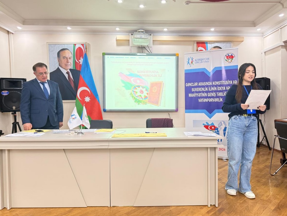 "Konstitusiya və Suverenlik İli"nə həsr olunmuş tədbirdə “Azərbaycan Respublikasının Dövlət Suverenliyi Gününün və Konstitusiyasının təbliğində gənclərin rolu” mövzusu müzakirə edilmiş, fikir mübadiləsi aparılmışdır. Görüş diskussiya formatında davam etmişdir.