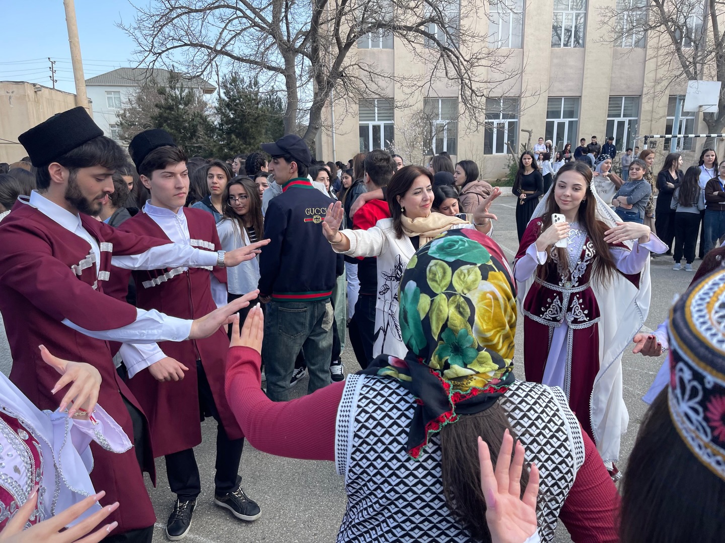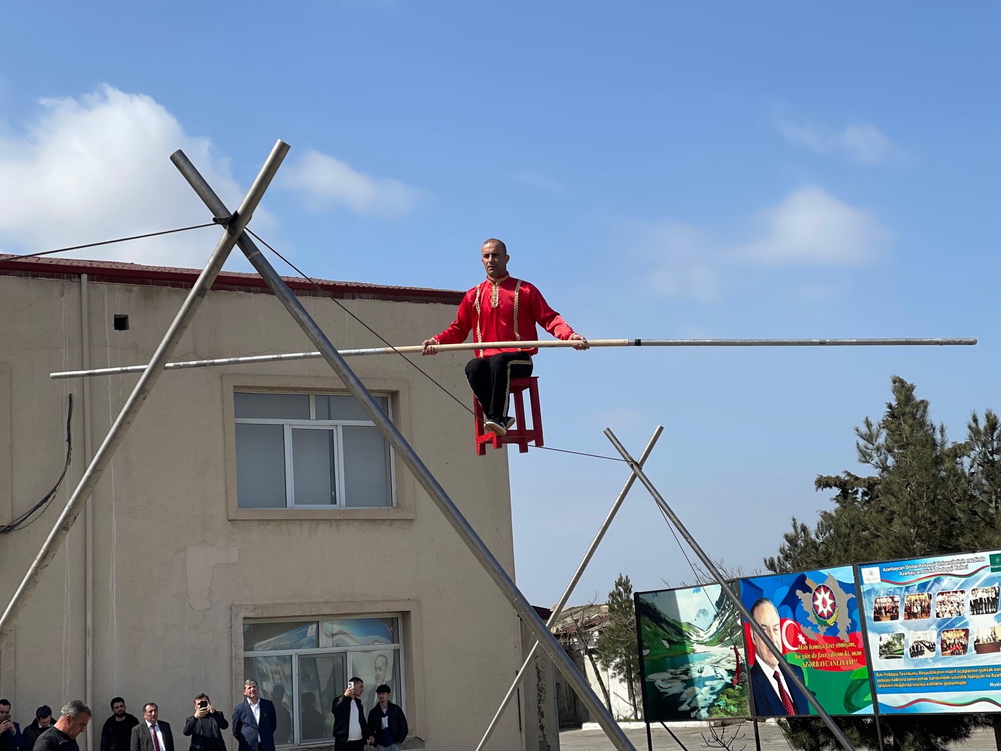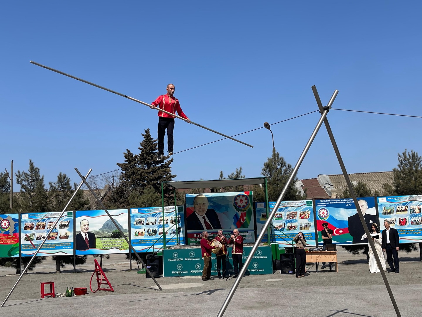 Daha sonra iştirakçılar kollecin həyətində kəndirbazın oyununu izləyiblər. Quba Mədəniyyət Mərkəzinin kəndirbazlıq üzrə mütəxəssisi, kollecin 2012-ci il məzunu, Fiziki tərbiyə müəllimliyi ixtisası üzrə təhsil almış Amil Məmmədhüseynovun çıxışı tədbirə xüsusi rəng qatıb.