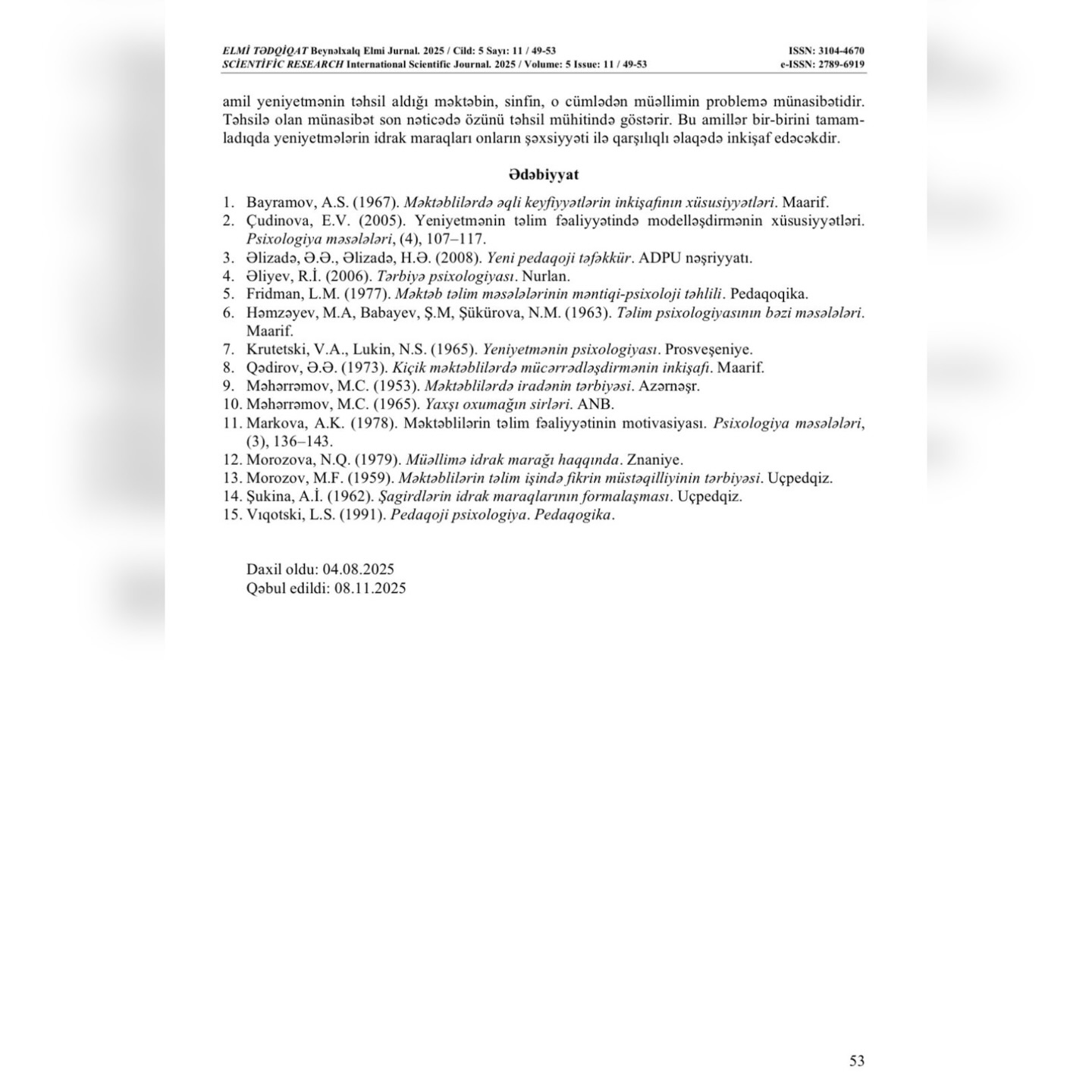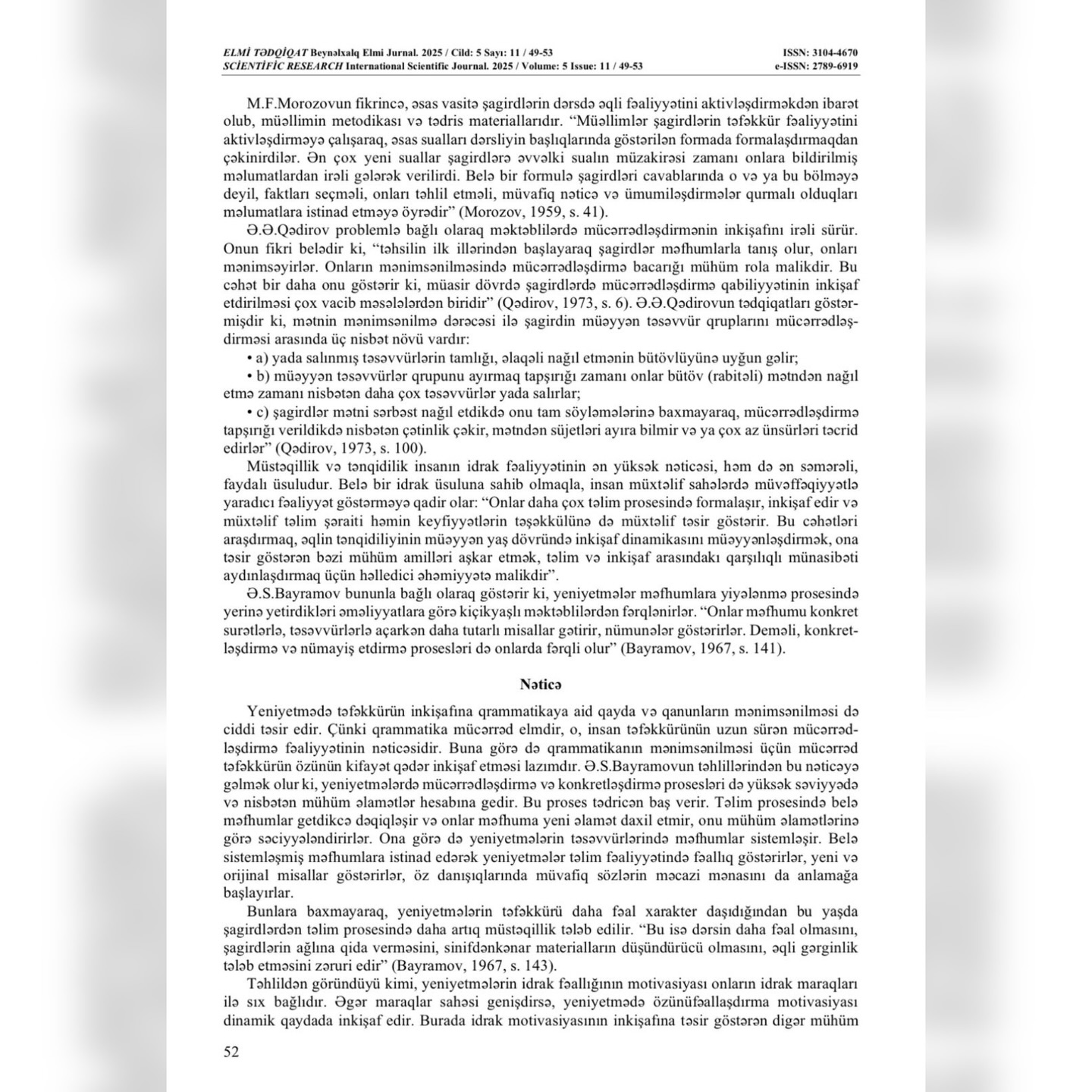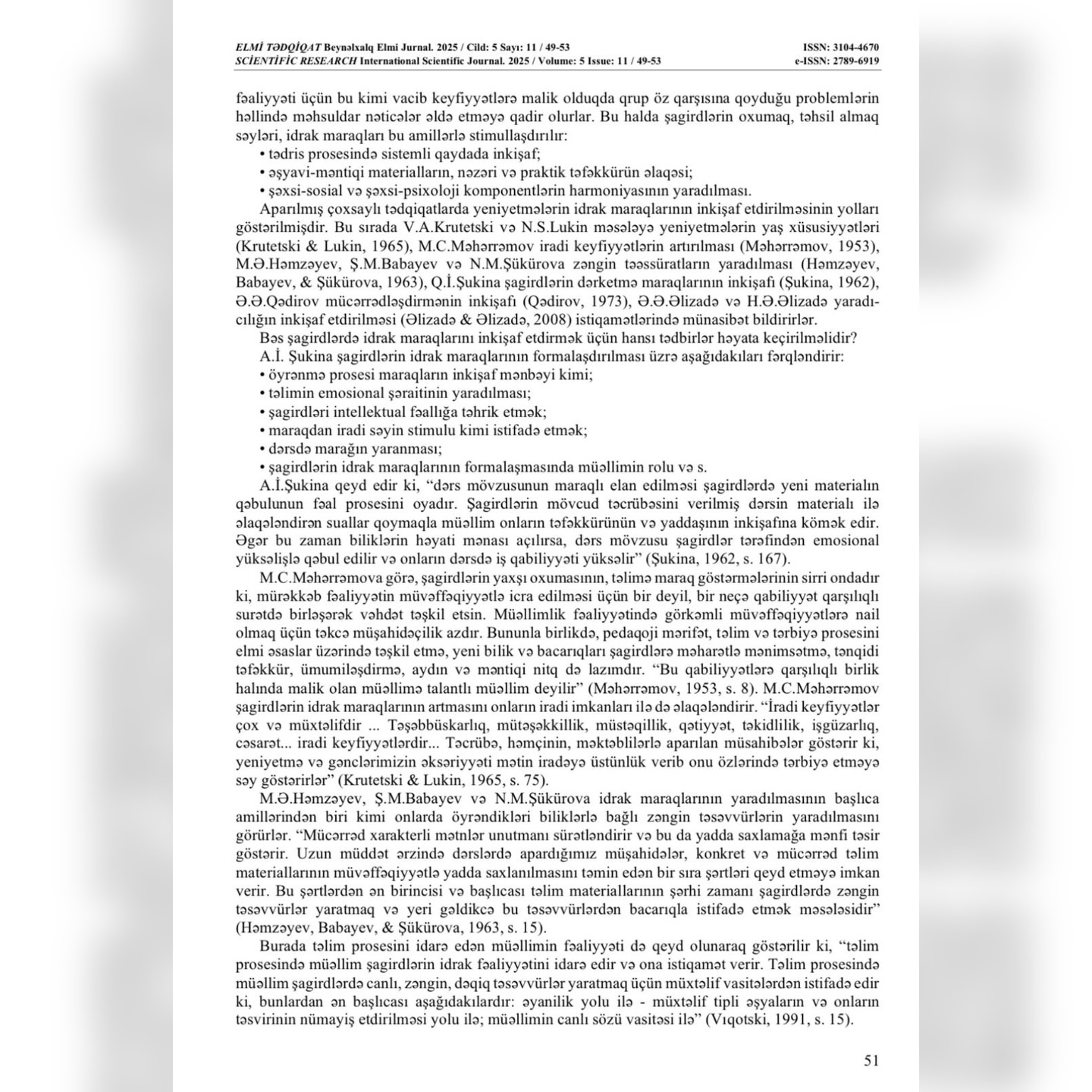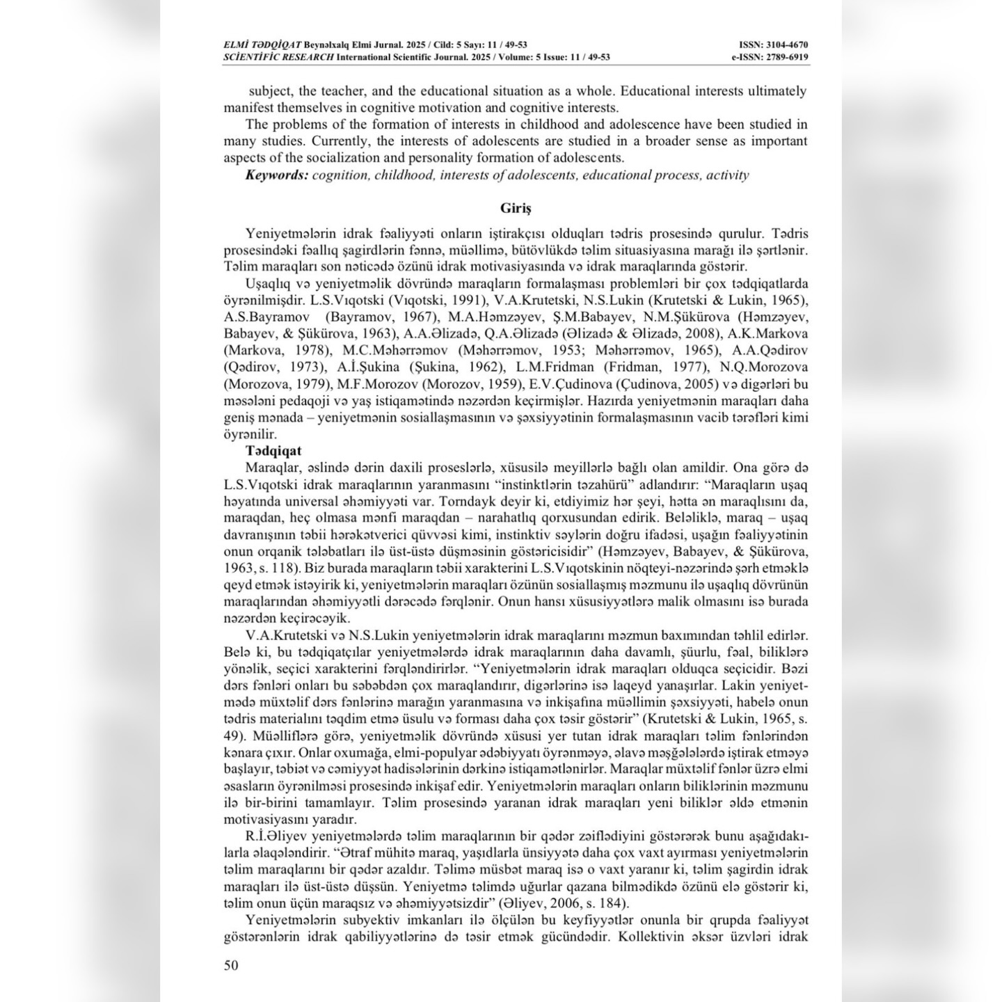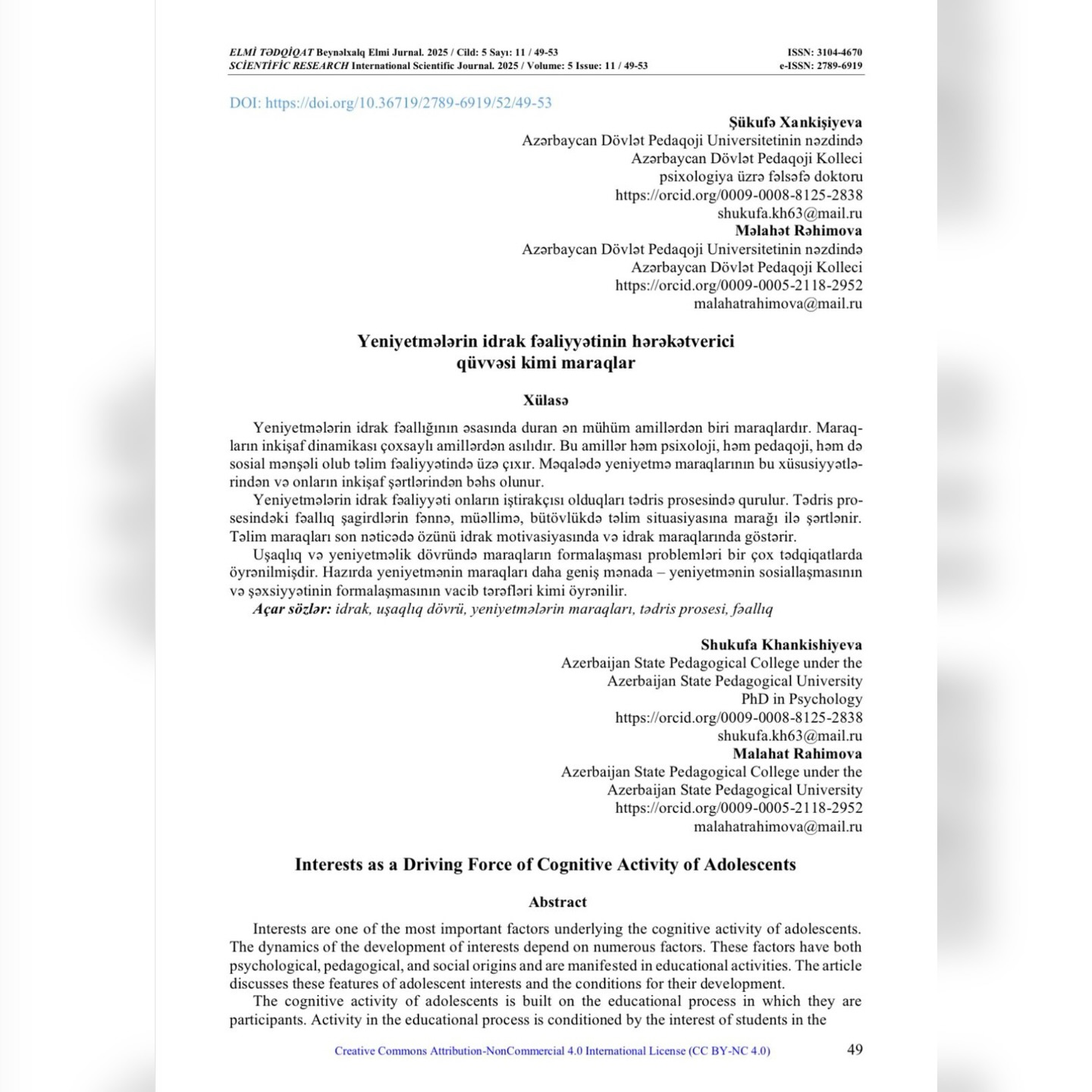 "Elmi tədqiqat" Beynəlxalq elmi jurnalında ADPU-nun nəzdində Azərbaycan Dövlət Pedaqoji Kollecinin Pedaqogika-psixologiya FBK müəllimləri Şükufə Xankişiyeva və Məlahət Rəhimovanın həmmüəllifi olduğu “Yeniyetmələrin idrak fəaliyyətinin hərəkətverici qüvvəsi kimi maraqlar” adlı məqalə dərc edilib.