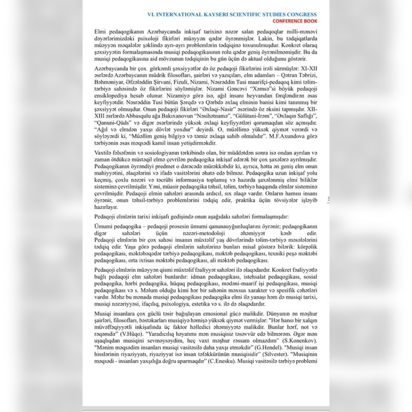O, tədbirdə “Musiqi pedaqogikasının elmi araşdırmaları” mövzusunda elmi məruzə ilə çıxış etmişdir. Təqdim olunan tədqiqat iştirakçılar tərəfindən maraqla qarşılanmışdır.
