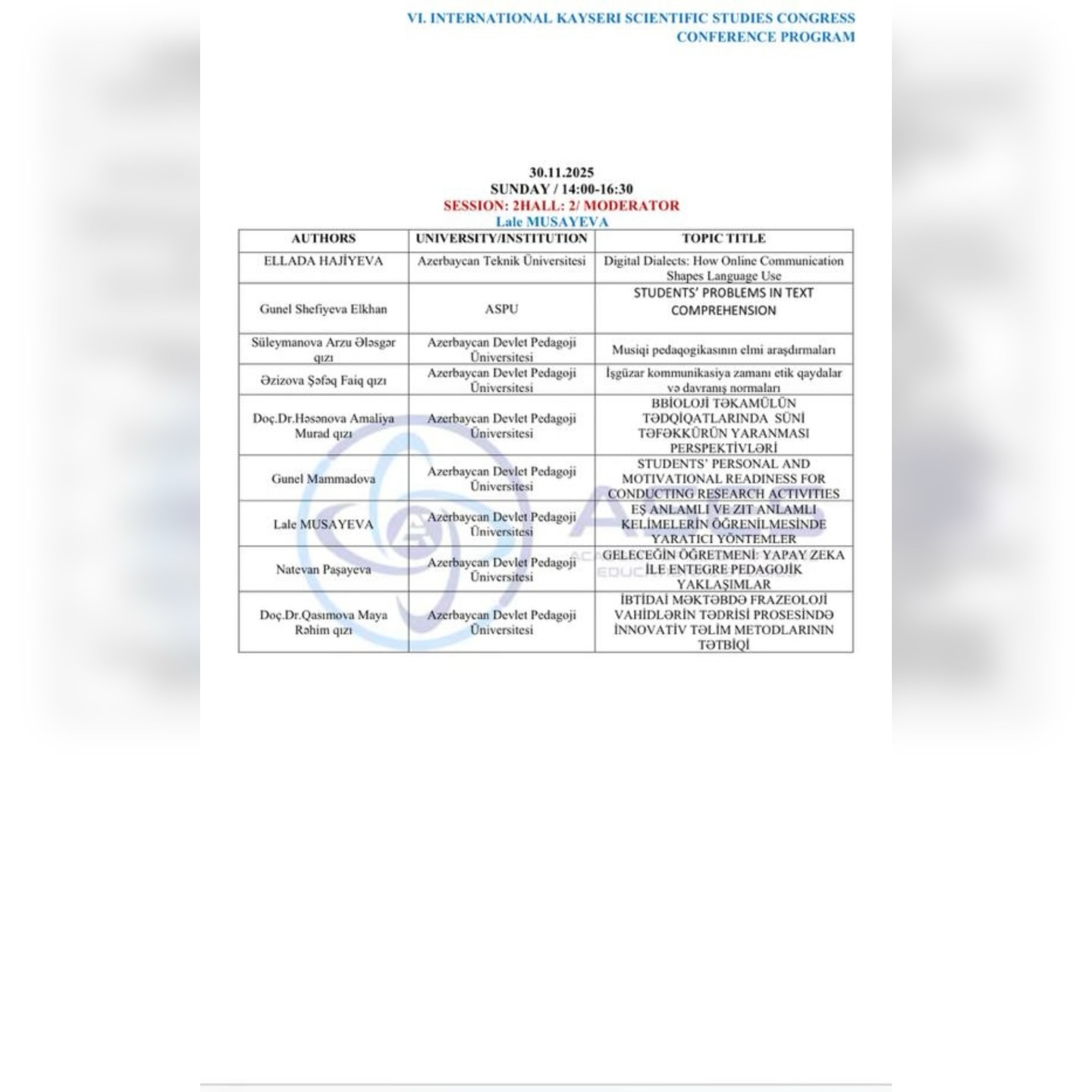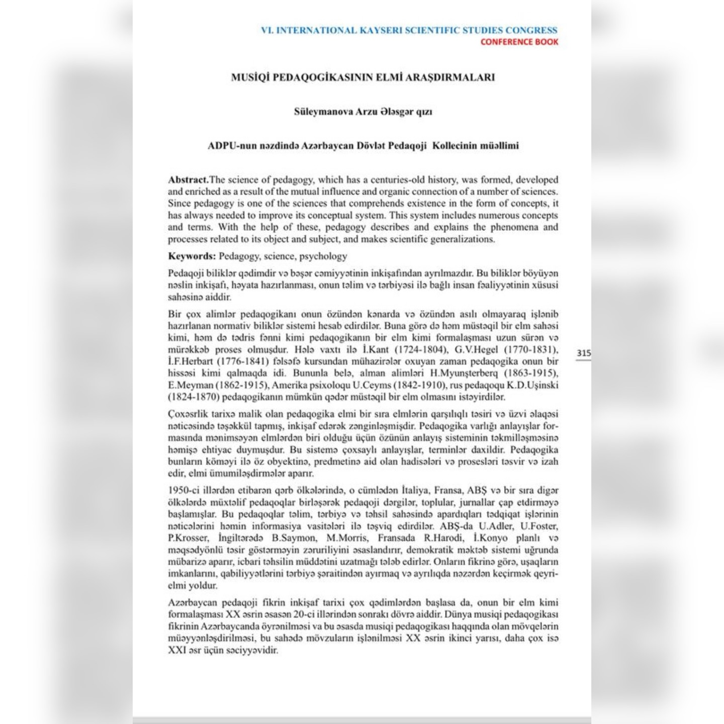 ADPU-nun nəzdində Azərbaycan Dövlət Pedaqoji Kollecinin Pedaqogika-psixologiya FBK müəllimi Süleymanova Arzu Ələsgər qızı 28–30 noyabr 2025-ci il tarixlərində Rumıniyada keçirilən 14-cü Beynəlxalq “ARTEMIS” Elmi Tədqiqat Konqresində iştirak etmişdir.