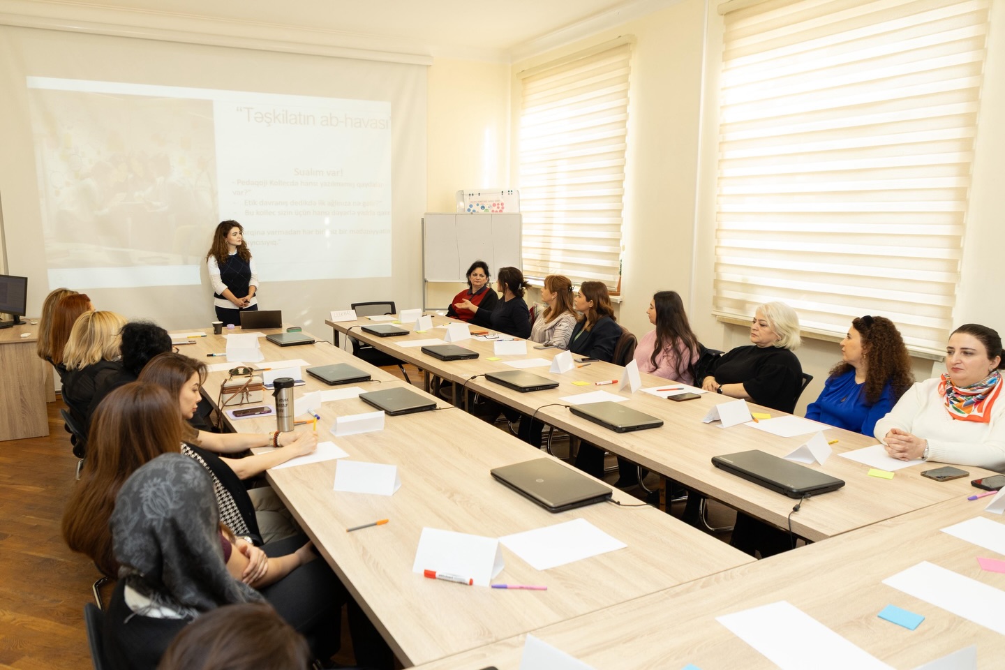 Təlimlərin gedişində iştirakçılara təşkilati mədəniyyətin formalaşdırılması, etik davranış prinsipləri, peşəkar ünsiyyət, idarəetmədə etik normaların tətbiqi ilə bağlı nəzəri və praktik biliklər təqdim olunub.