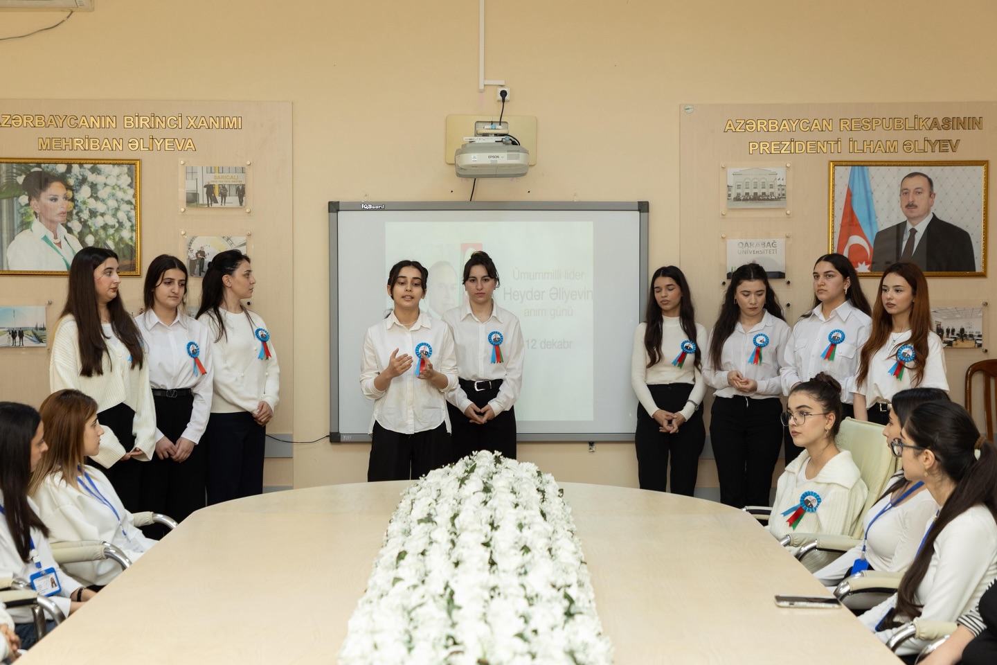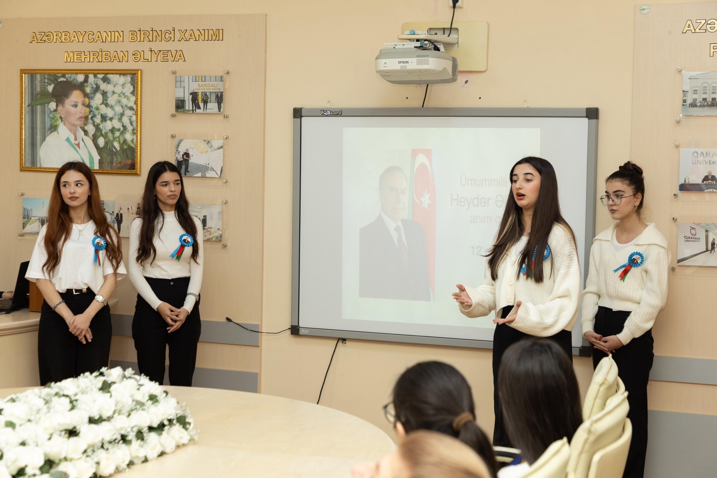 Tədbirdə Heydər Əliyevin həm sovet dövründə, həm də müstəqillik illərində Azərbaycanın inkişafındakı əvəzsiz xidmətlərindən bəhs edilib, onun dövlətçilik irsi və ideyalarının müstəsna əhəmiyyət daşıdığı vurğulanıb. Tələbələrin ifasında şeir və kompozisiyalar səsləndirilib, videoçarx nümayiş olunub.