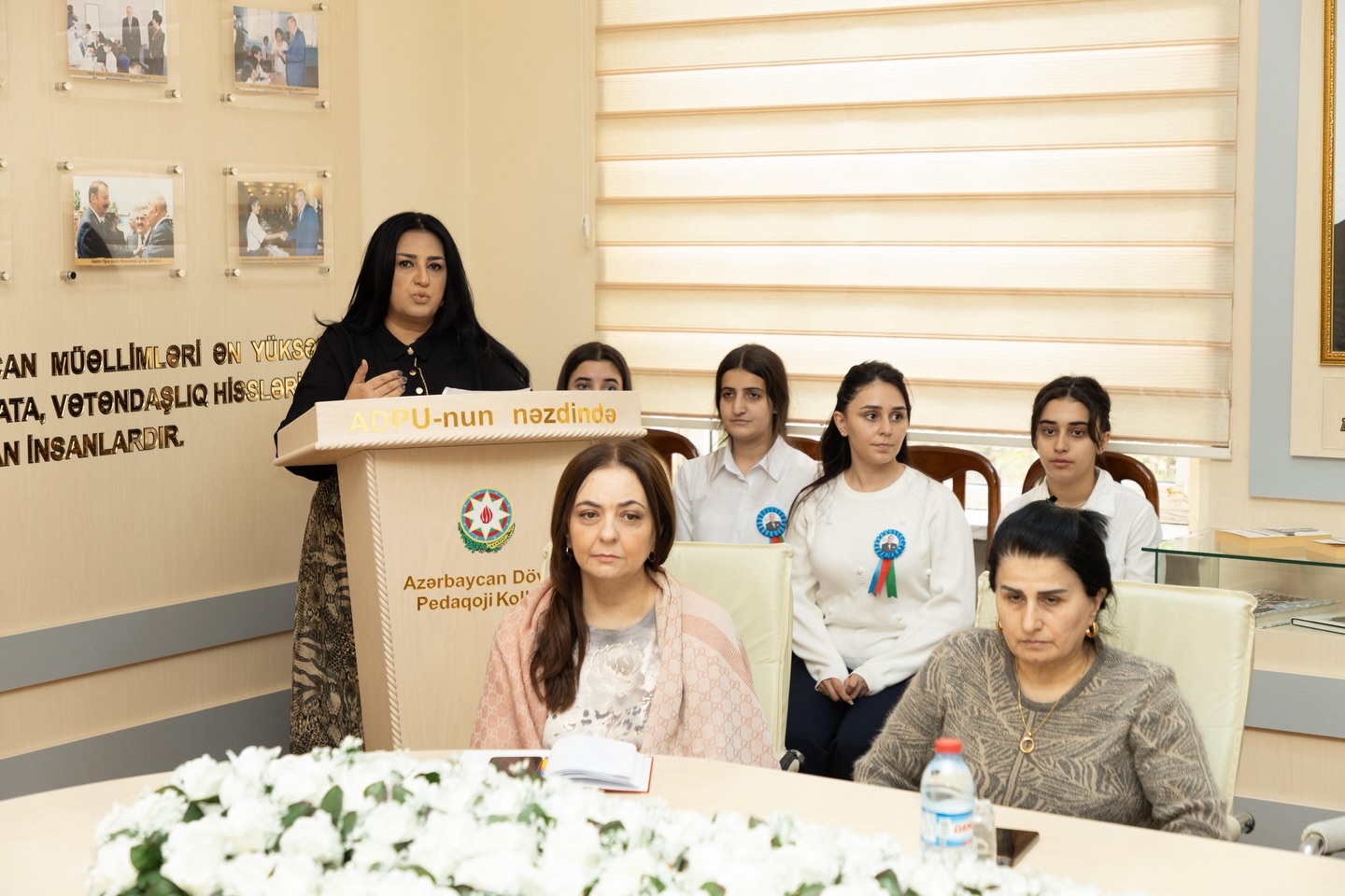 ADPU-nun nəzdində Azərbaycan Dövlət Pedaqoji Kollecinin Humanitar fənn birləşmə komissiyasının təşkilatçılığı, FBK müəllimlərinin və tələbələrin iştirakı ilə Ümummilli Lider Heydər Əliyevin anım gününə həsr olunmuş “Fırtına və qasırğaları ram edən şəxsiyyət” mövzusunda tədbir keçirilib.