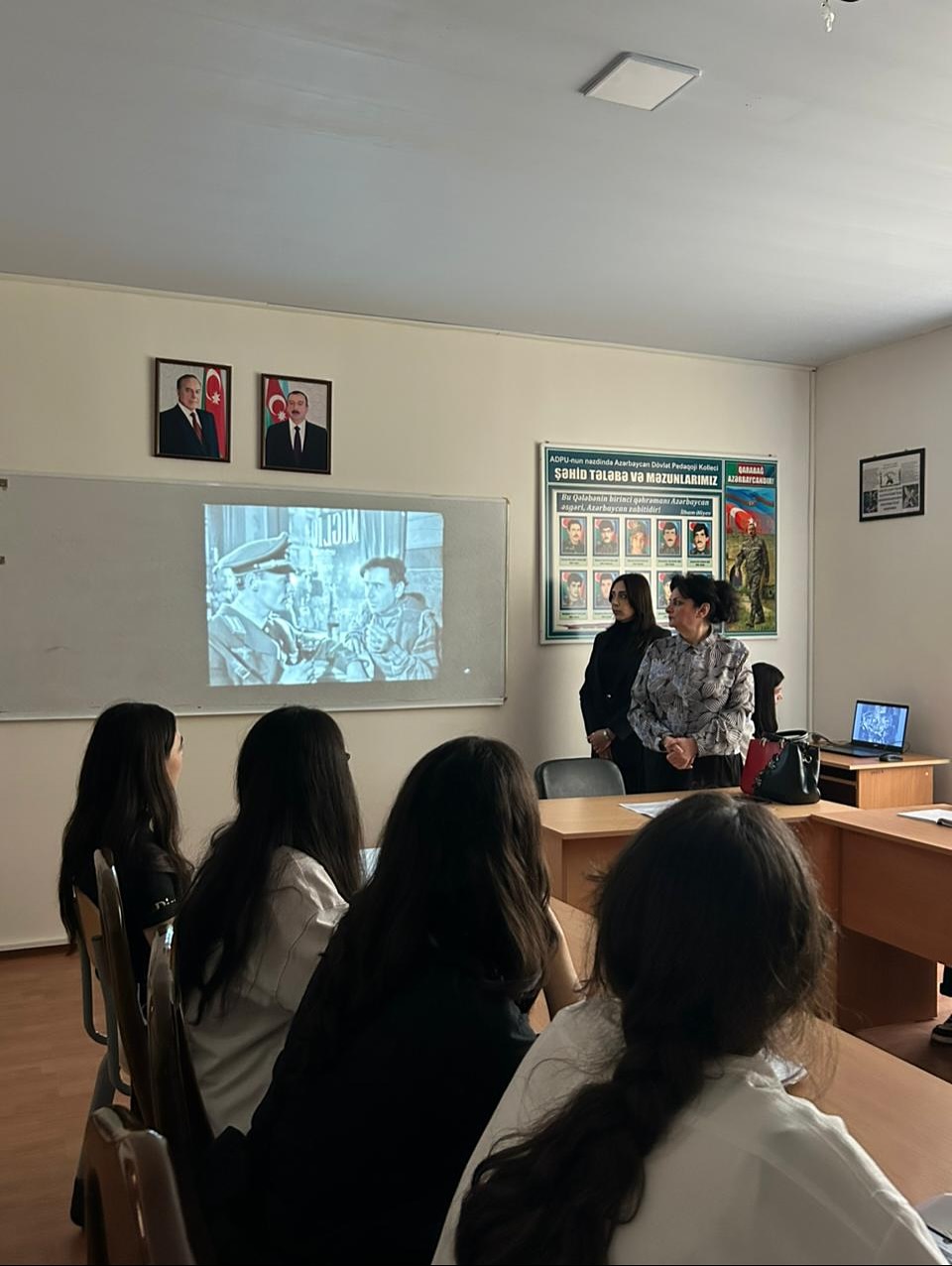 ADPU-nun nəzdində Azərbaycan Dövlət Pedaqoji Kollecinin Humanitar fənn birləşmə komissiyasının təşkilatçılığı ilə FBK müəllimi tələbələrlə birlikdə “Tariximizin izi” adlı klubun fəaliyyəti çərçivəsində II Dünya müharibəsində iştirak etmiş Sovet İttifaqı Qəhrəmanı Mehdi Hüseynzadənin döyüş yolundan bəhs edən “Uzaq sahillərdə” filminə baxış keçirib.