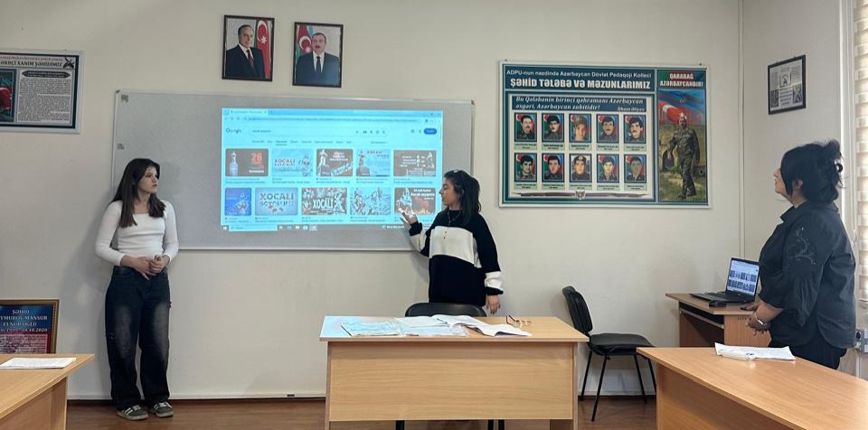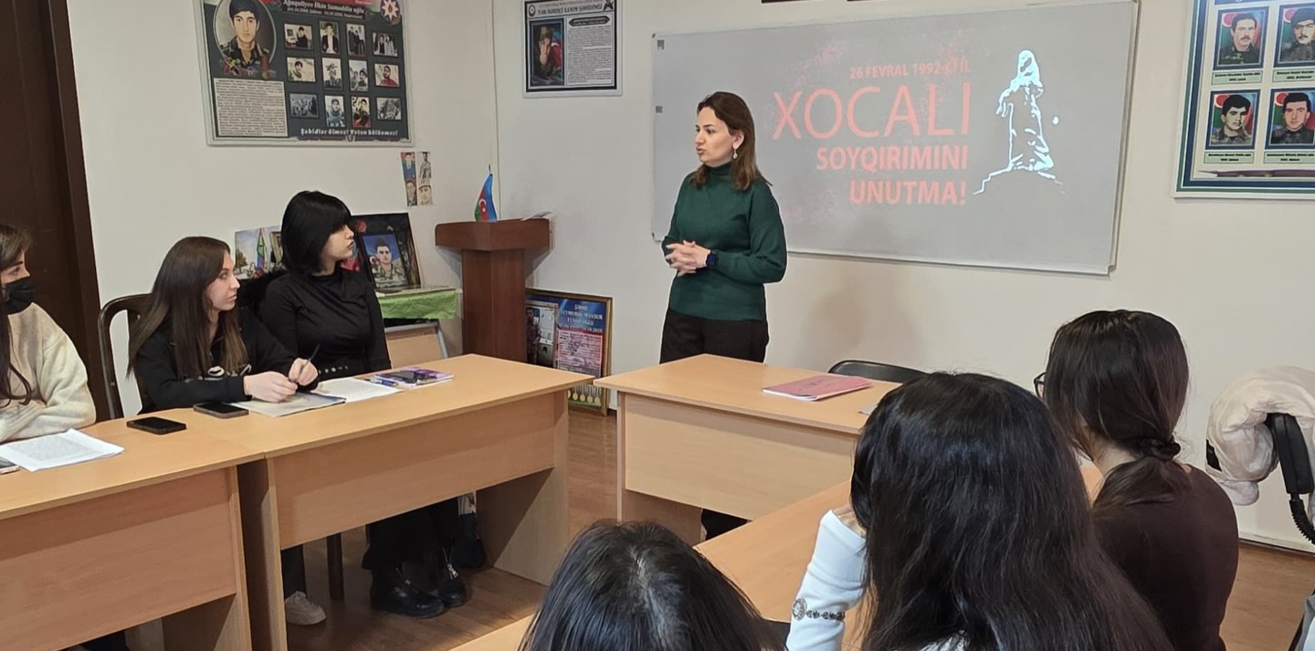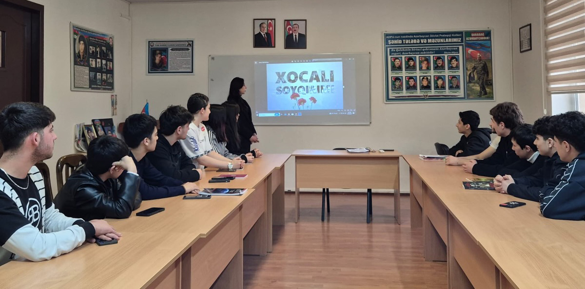 ADPU-nun nəzdində Azərbaycan Dövlət Pedaqoji Kollecinin Humanitar FBK müəllimləri ilə "Qəhrəmanlıq" auditoriyasında “Xocalı həqiqətləri və milli yaddaş” başlığı altında dərslər keçirilib.