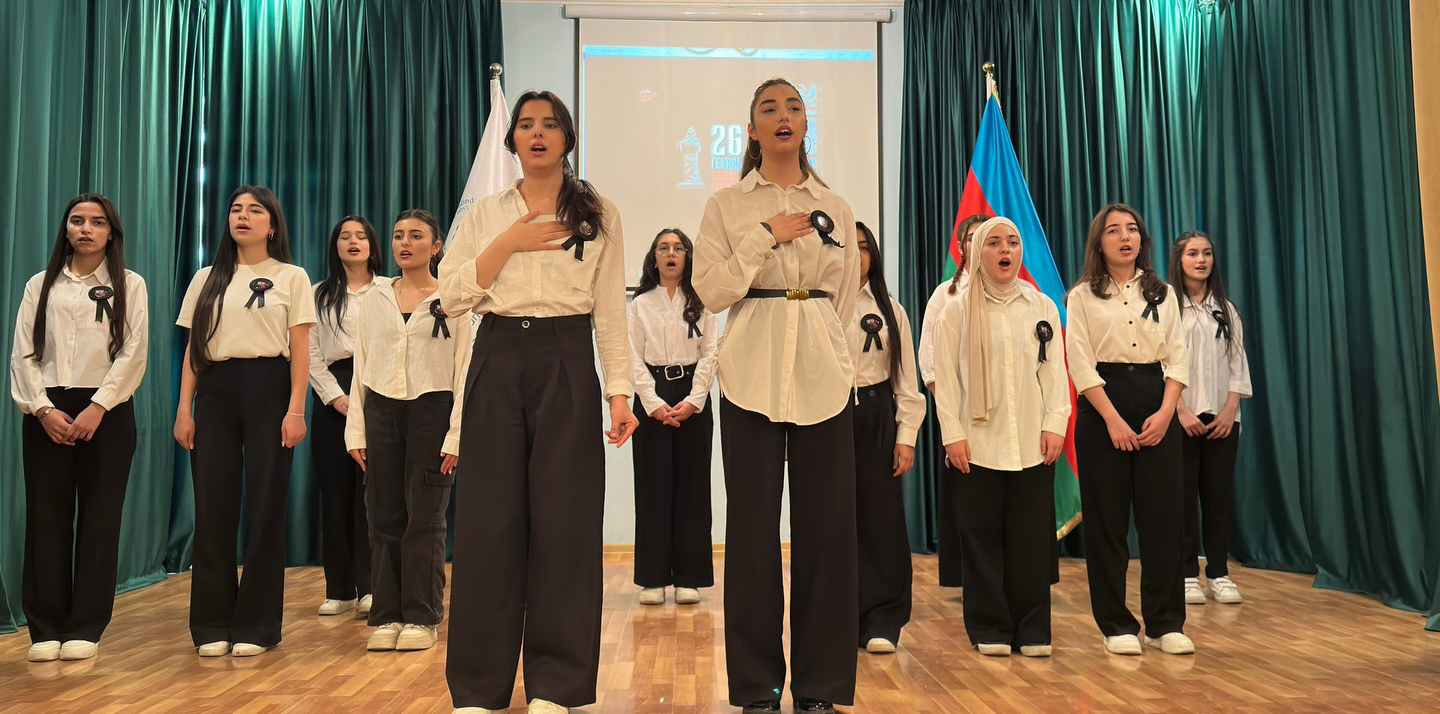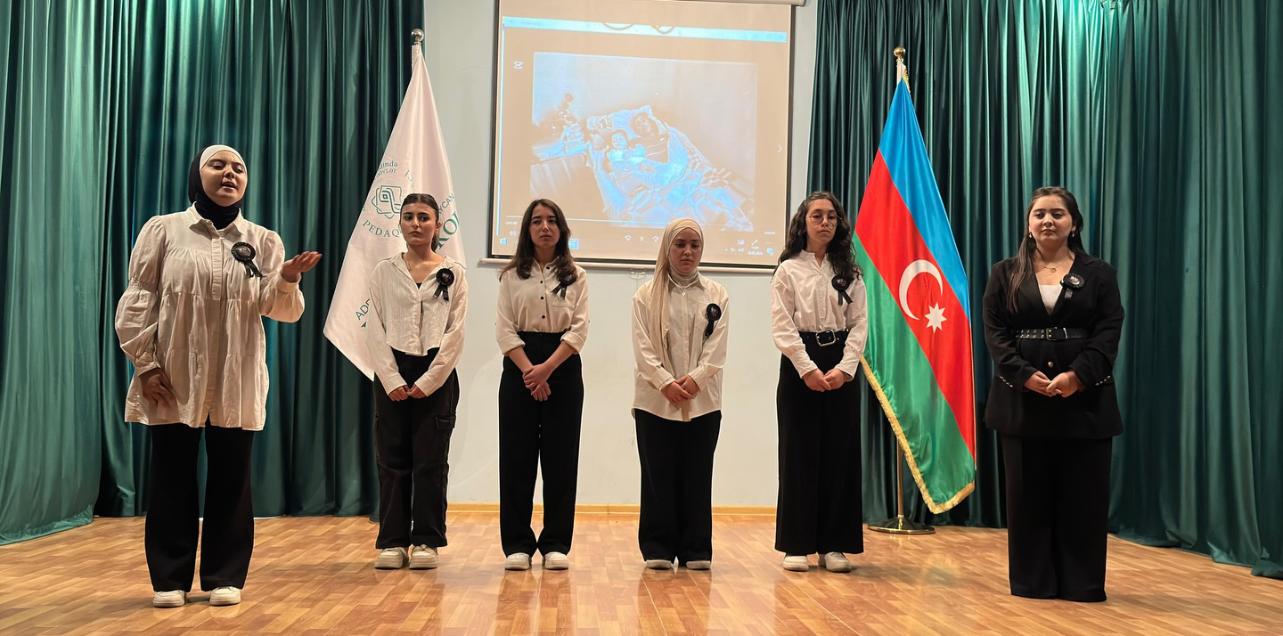 Tədbirdə Xocalı faciəsi qurbanlarının və bütün şəhidlərin xatirəsi bir dəqiqəlik sükutla yad olunub. Qeyd edilib ki, Xocalı qətliamı iyirminci yüzillikdə tək Azərbaycan xalqına qarşı deyil, bütövlükdə bəşəriyyətə qarşı törədilmiş ən qəddar cinayətlərdən biridir. Tələbələrin hazırladıqları çıxışlarda bu kütləvi qırğının səbəb və nəticələri haqqında danışılıb, milli birliyin və tarixi yaddaşın qorunmasının vacibliyi vurğulanıb.